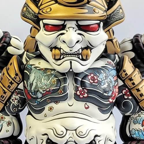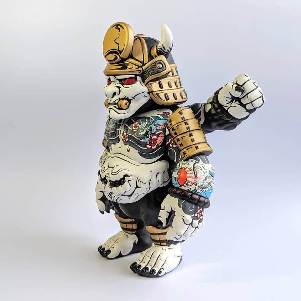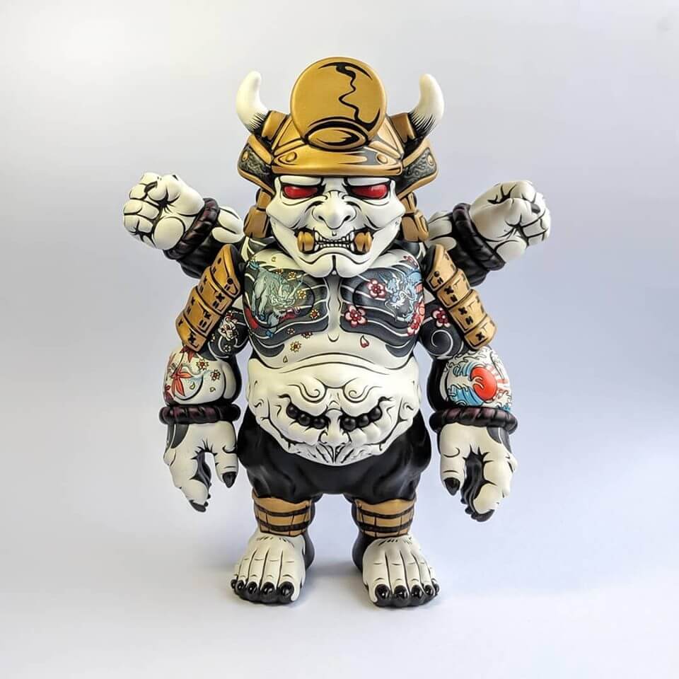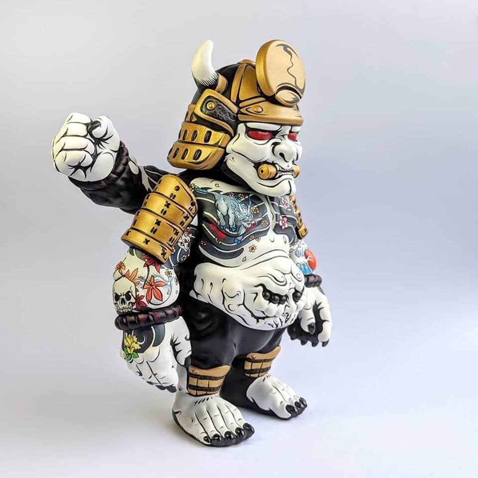 One shall rise! and one shall fall! from the depth of hell Gōremu the Protector has risen. Jon Paul Kaiser takes Scotty W Demoncraft and ToyZeroPlus “Ushioni Samurai” and gives his spin on it. JPK’s signature style alongside his love of shadows and tattoo’s. Levelling up what was already a great figure! Scotty W Demoncraft x ToyZeroPlus time for a JPK “Ushioni Samurai” production?