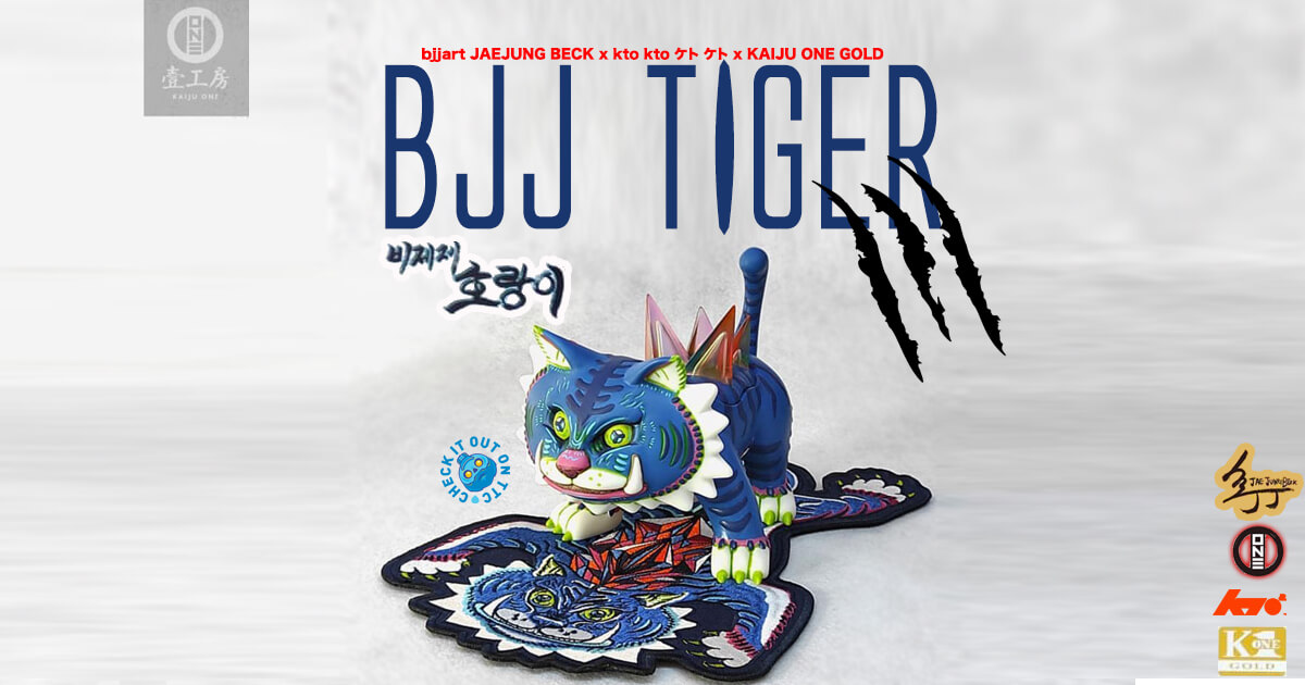 Can you hear the mighty RAWWWWWW?! the rumours are true bjjart 백재중 JAE JUNG BECK- X kto kto ケト ケト x KAIJU ONE GOLD are back! finishing off the year with one mighty release! Since the OG release earlier on in the year, collectors have been itching for the next colourway. we know its 2020 but good things do happen, HA. The anticipated BJJ Tiger Blue Version is here and you have the chance to own one. the masterminds at KAIJU ONE has signed up a Korea Artist 백재중- JAEJUNG BECK- 白宰仲 to join the KAIJU ONE GOLD team roster. bringing bjjart 백재중 JAEJUNG BECK’s illustrations into a full vinyl version of JAEJUNG’sBJJ Tiger. Enlisting kto kto/ケト ケト to translate the 2D into 3D the old skool way with the sculpting. Now Kaiju One GOLD is offering you the chance to own one of the first BJJ Tigers! Who said Tigers can’t change their stripes?
