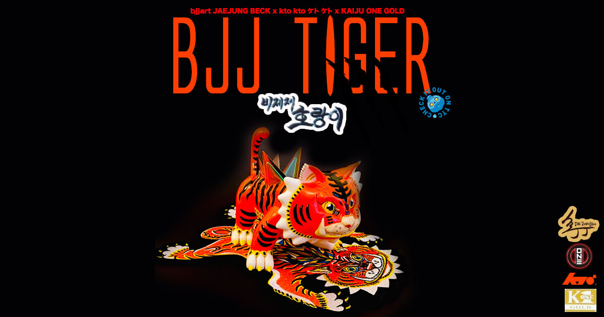 After months of teasing, the mighty BJJ Tiger by bjjart 백재중 JAE JUNG BECK- X kto kto ケト ケト has been set free into the wild! the masterminds at KAIJU ONE has signed up a Korea Artist 백재중- JAEJUNG BECK- 白宰仲 to join the KAIJU ONE GOLD team roster. bringing bjjart 백재중 JAEJUNG BECK’s illustrations into a full vinyl version of JAEJUNG’sBJJ Tiger. Enlisting kto kto/ケト ケト to translate the 2D into 3D the old skool way with the sculpting. Now Kaiju One GOLD is offering you the chance to own one of the first BJJ Tigers!
