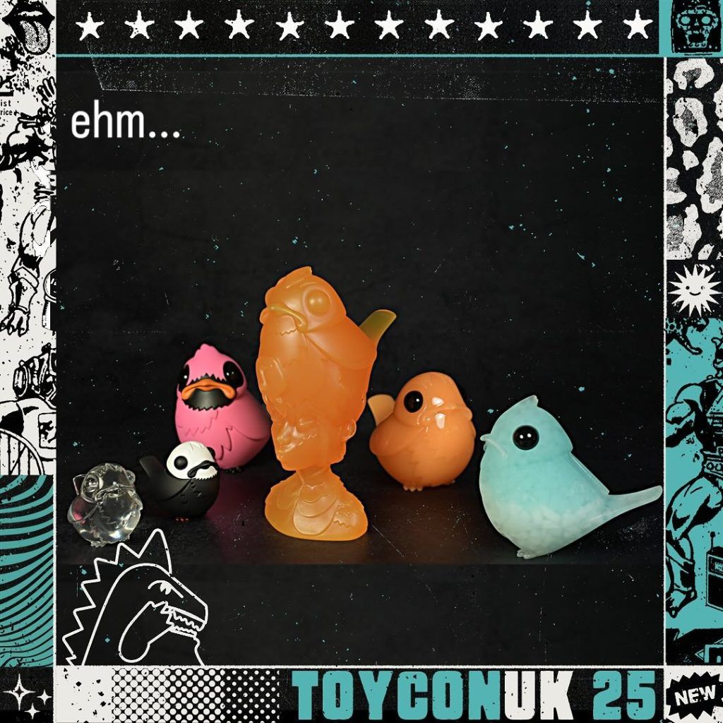 Bringing his greatness to this weekend’s ToyCon UK 2025 is none other than Malte Fulda Muffin Man! You guys are in for a treat as shiny OddOnes Jays, sparkly Robin OddOnes, the return of Grümpfs! Shy Sakura with black face mask and the Mini, GLOW IN THE DARK goodness, plus Whisteling Birds by Codeczombie and Muffin Man and a lonely little Mini. WAIT thats not all, THE ORIOLE has flown into London! to top it off, you get to “Insane In The Bike Lane” coming in a vibrant red. Need more? you got it as Blanky McWhite, for your customising pleasure! Made of Japanese sofubi! or we can just admire the raw white sofubi.